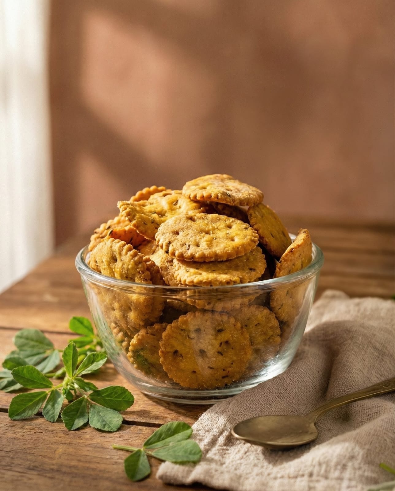 Inspired by classic thepla flavours, Thepla Bites combine crisp texture with the earthy taste of methi, making them a cosy seasonal snack
